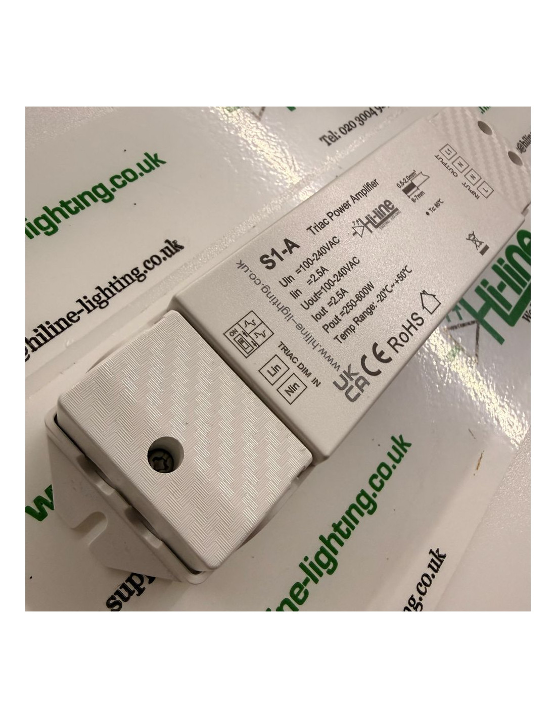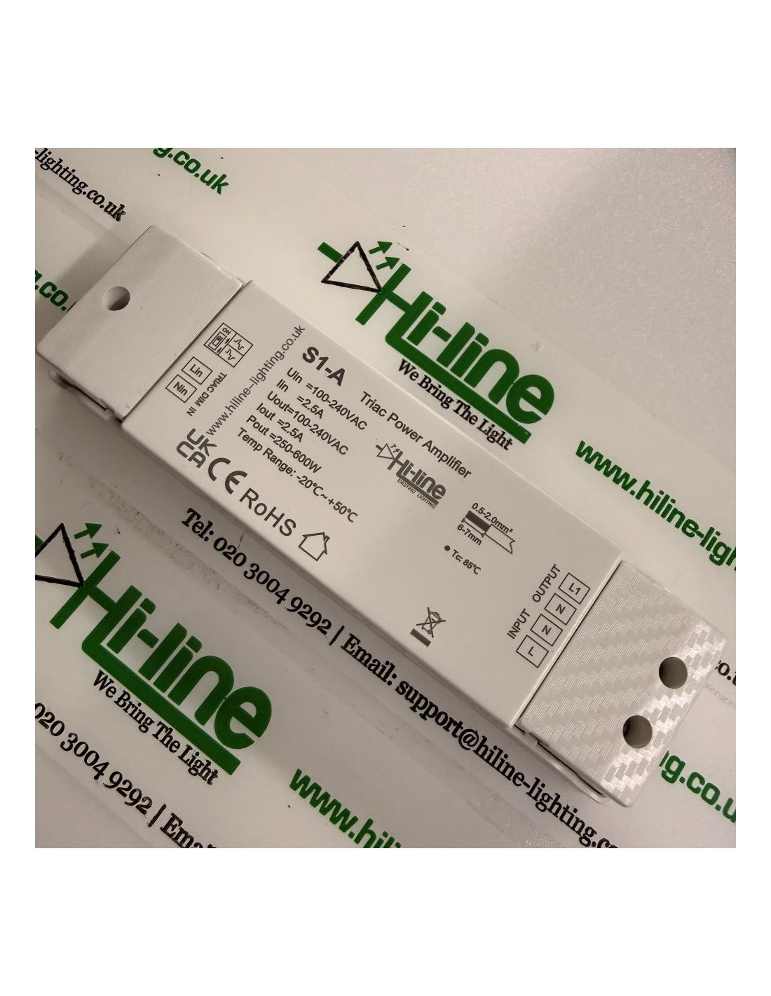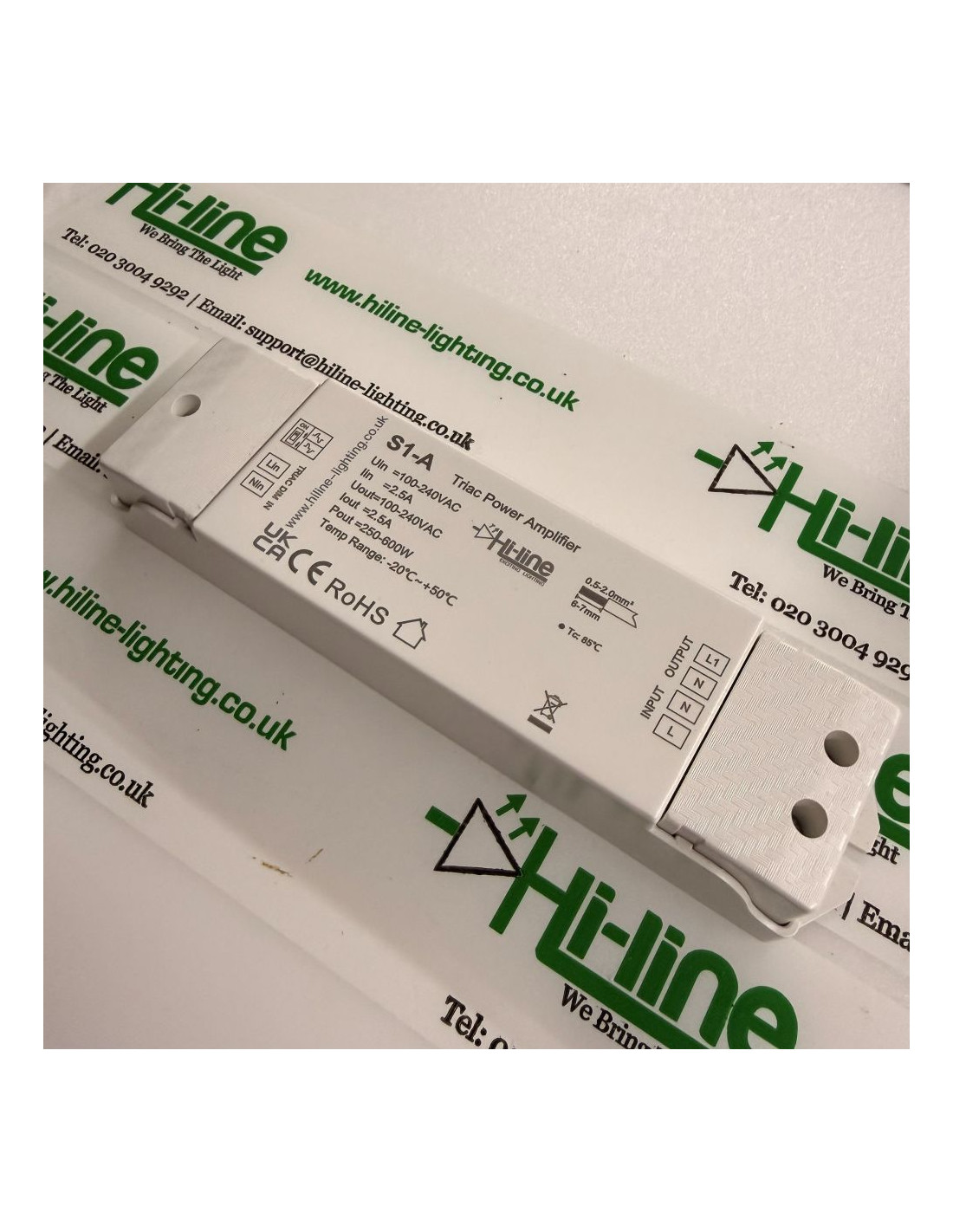 Die Gesamtlast darf die maximal zulässigen Werte nicht überschreiten. Einschaltstrom und Leistungsfaktor aller angeschlossenen LED-Treiber und Leuchten müssen geprüft werden. Falsche Auslegung oder unsachgemäße Installation kann zu Instabilität, Überhitzung oder Schäden führen. Hi-Line Lighting liefert ausschließlich Komponenten und bietet keine Planungs- oder Installationsberatung an. Die Auslegung des Systems, die Kabeldimensionierung, Schutzmaßnahmen und die Installation müssen von einem qualifizierten Fachbetrieb durchgeführt werden. Fehlerhafte Installationen können zu Schäden oder Brandgefahr führen.