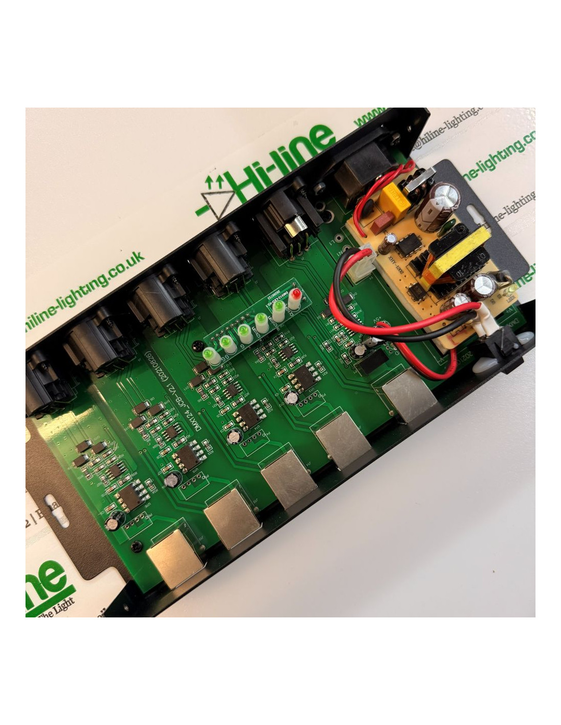 Der Splitter formt und verstärkt das eingehende DMX-Signal, bevor es an jeden Ausgang weitergegeben wird. Dadurch werden Flackern, Signalverlust und unzuverlässiges Verhalten vermieden, wie sie häufig bei langen Kabelstrecken, Kabelverbindungen oder alter Verkabelung auftreten können. Die vollständige elektrische Isolation der Ausgänge schützt Controller, Decoder und Leuchten vor Störungen, Masseschleifen oder Verkabelungsfehlern in einzelnen Leitungszweigen.