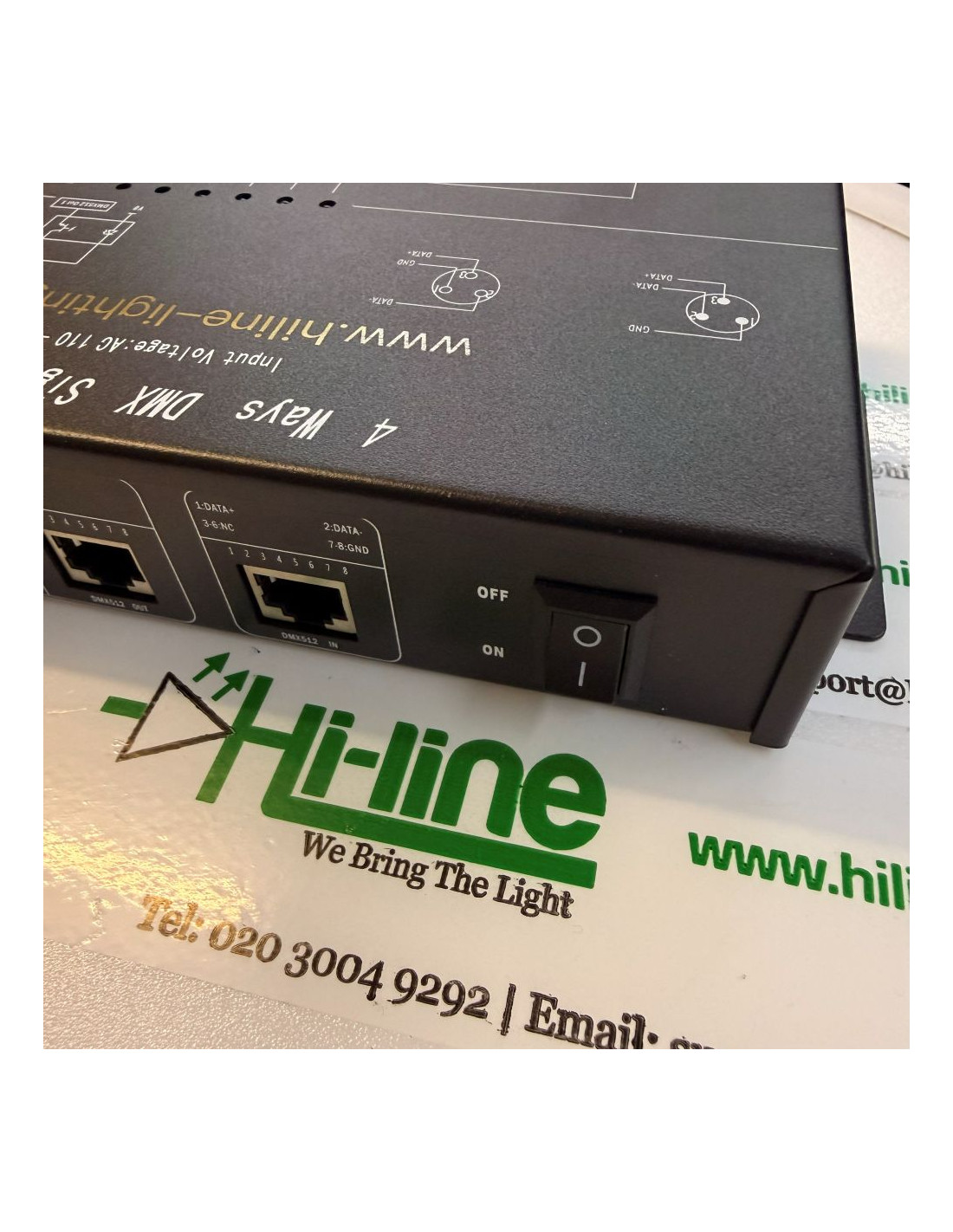 Professioneller 4-fach DMX512-Splitter mit einem Eingang und vier vollständig isolierten Ausgängen. Unterstützt bis zu 32 Geräte pro Ausgang und bis zu 16 hintereinandergeschaltete Splitter. Regeneriert und stabilisiert das DMX-Signal für lange oder komplexe Installationen. Am letzten Gerät ist ein 120-Ohm-Abschlusswiderstand erforderlich. Universeller AC100–240V-Eingang; Netzkabel ohne Stecker im Lieferumfang.