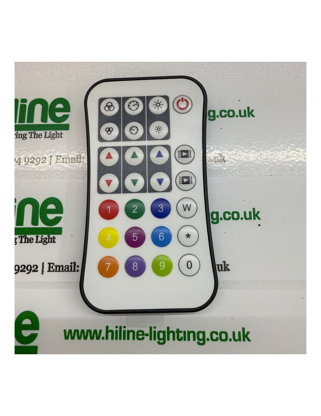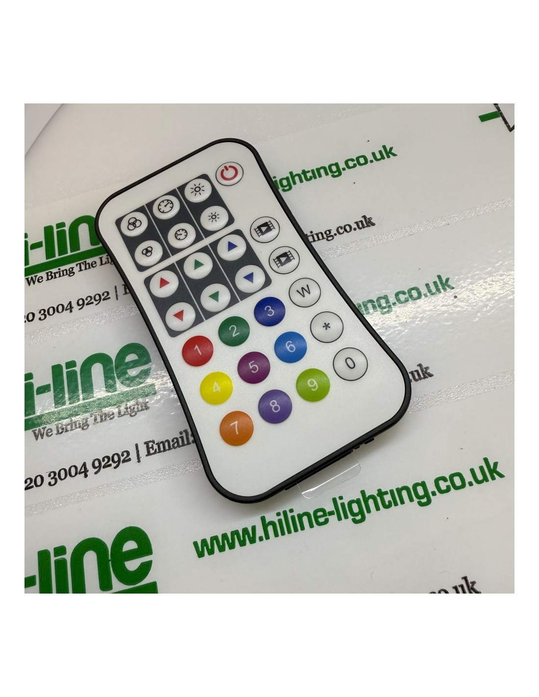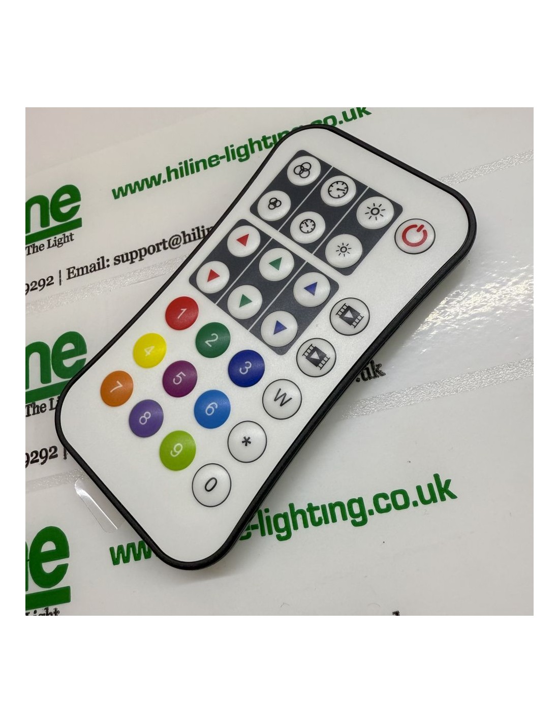 27-Tasten RF-Fernbedienung für SPI-Pixel-Controller. Zur Einstellung von LED-Länge, Chip-Typ und RGB-Reihenfolge. 2,4 GHz, Reichweite bis 30 m, CR2032-betrieben.