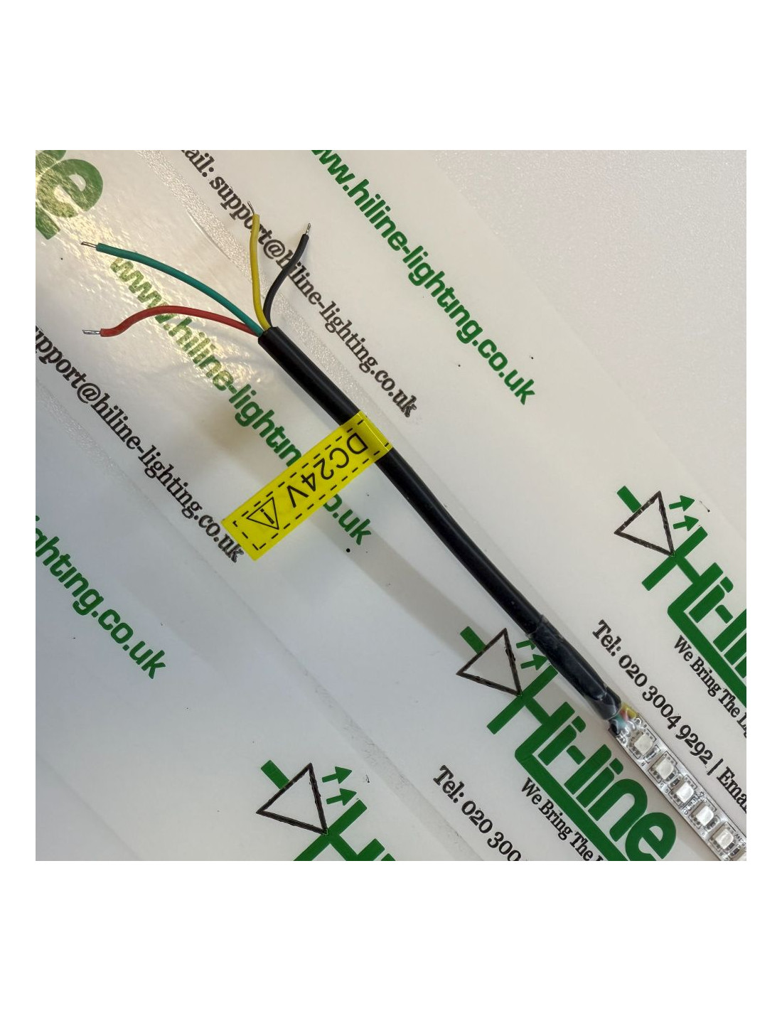 Der LED-Streifen wird mit 15cm Kabelüberhang (4-adrig) an jedem Ende der Streifenrolle geliefert. Deshalb ist kein zusätzliches Löten erforderlich, falls das Band in 2 unterschiedliche Teile (z.B. 3m + 2m) geschnitten wird.
