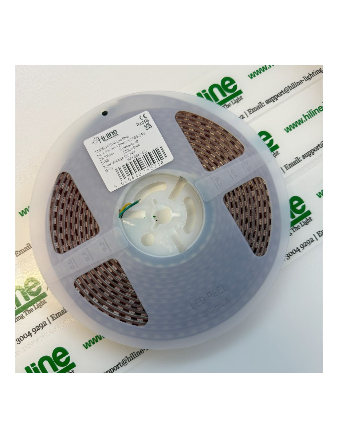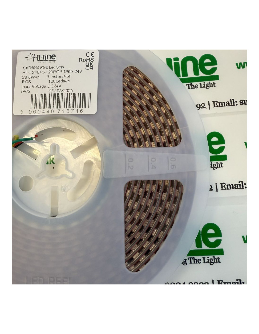Der angezeigte Preis bezieht sich auf eine 1 x 5m Rolle des RGB LED-Streifens mit 600 SMD4040 LEDs – IP54/65 24V DC.