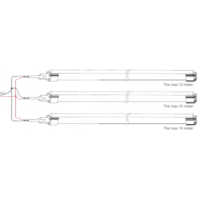 Please do NOT connect more than 10 meters of LED flex in series. A LED flex of more than 10 meters in length will overloaded, due to the increased amount of current passing through, resulting in the damage of the internal FCB and failure of the product.