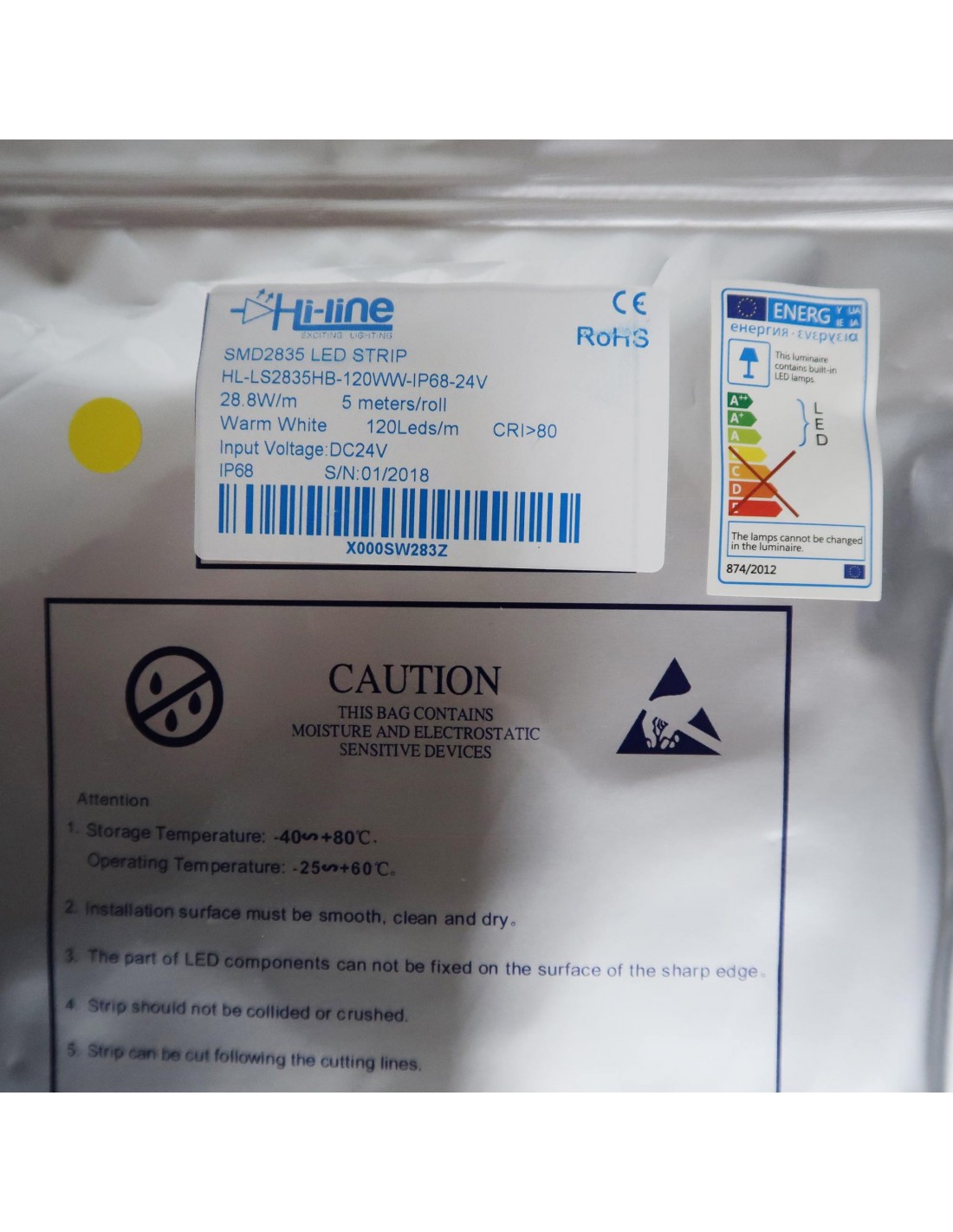The high quality of Hi-Line LED strip products ensures low decay, which increases the LED strip's lifespan and assures that the high level of the brightness is kept constant throughout the LED strip's life.